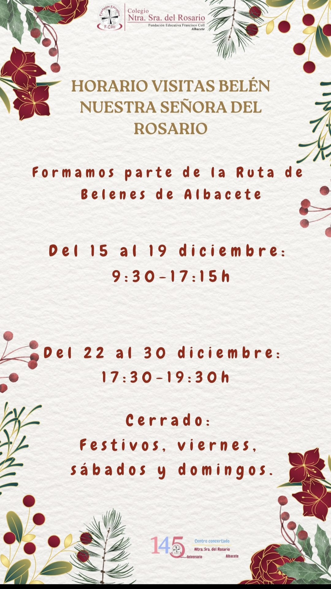 Invitamos a quienes aún no lo han visitado a acercarse al colegio y disfrutar de este trabajo tan especial, que ya forma parte de la identidad navideña del Colegio Nuestra Señora del Rosario.